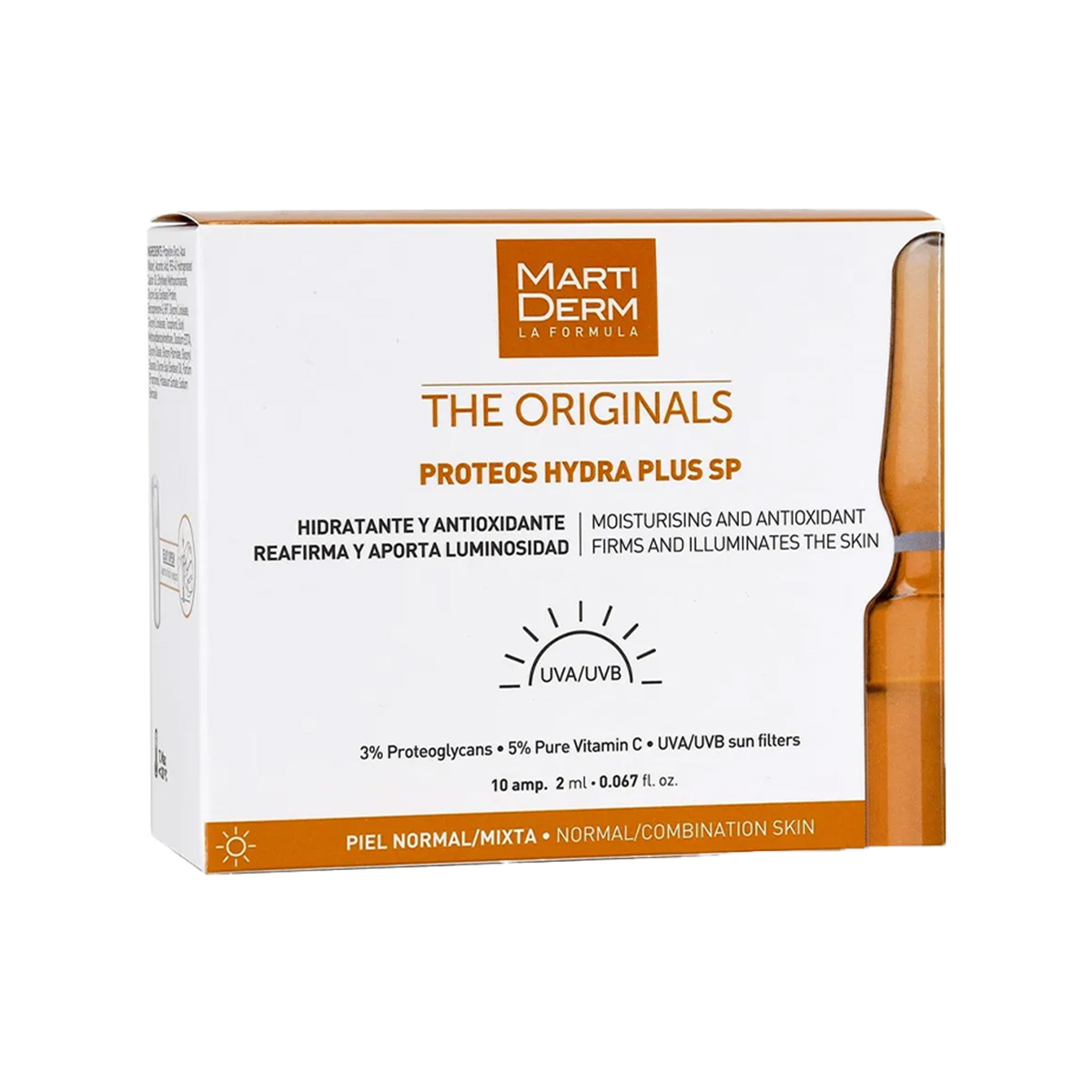 Proteos Hydra Plus SP është një trajtim antioksidant kundër plakjes me filtra dielli mbrojtës UVA/UVB, për të mbrojtur lëkurën normale dhe mikse. Vjen në formatin e ampulave me formulë hidratuese dhe forcuese që përmban proteoglikane, vitaminë C dhe SPF, të cilët sigurojnë shkëlqim dhe ndihmojnë në reduktimin e rrudhave.