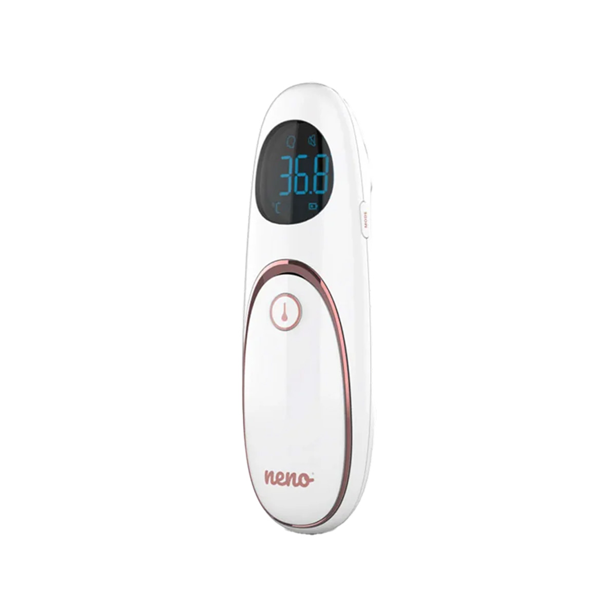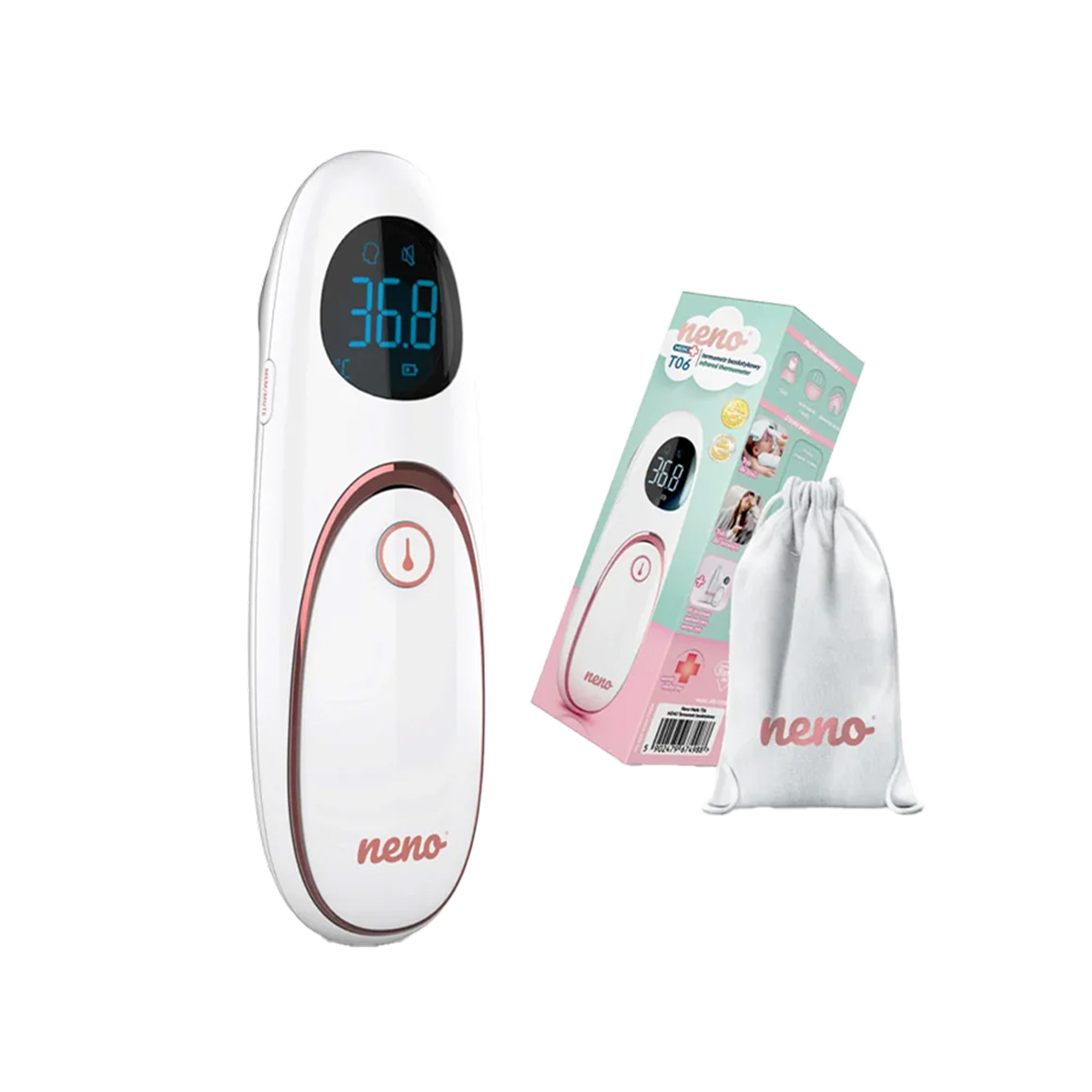 Termometri Neno T06 është një pajisje që ju lejon të matni me saktësi temperaturën e trupit, ushqimit, ujit dhe dhomës. Me modalitete për fëmijë (deri në 12 vjeç) dhe të rritur që mund të ndryshohen lehtësisht me prekjen e një butoni, është ideal për të gjithë familjen. Një memorie prej 20 matjesh ju lejon të mbani gjurmët e historisë së temperaturës dhe një sondë që kontrollon distancën e matjes verifikon që ajo është marrë saktë. Ajo vjen me 2 bateri AAA dhe një çantë praktike ruajtëse.